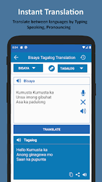 Bisaya Tagalog Translator to najlepsza i bardzo łatwa w użyciu aplikacja do tłumaczenia, która pomoże Ci przetłumaczyć słowa i tekst z Tagalogu na Bisaya i z Bisaya na Tagalog. Aplikacja ma prosty interfejs użytkownika, a tłumaczenie możesz wykonać w zaledwie kilka sekund.